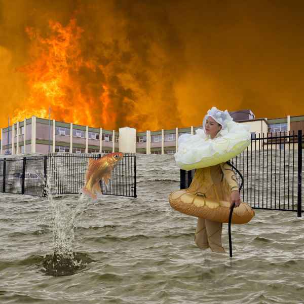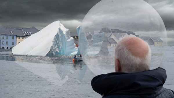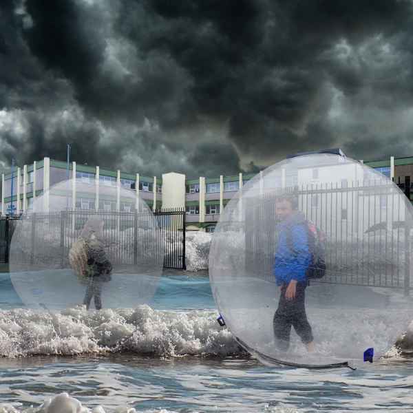 Sáinnithe sa trácht? Cas do chloigeann agus b’fhéidir go mbeadh radharc agat ar Ghaillimh i dtodhchaí nach bhfuil i bhfad uainn. An rud atá aisteach inniu b’fhéidir gurb é an gnáthsaol a bheidh ann amárach, le tuilte & leibhéal na farraige ag ardú agus ag athrú na cathrach. Tá an chathair faoi thoinn i bhfótamontáisí Joe Lee, ina bhfeictear muintir na Gaillimhe i ndearaí ealaíontóirí as Éirinn agus an Phalaistín a shamhlaíonn an chaoi a mhairfeadh siad i ndomhan difriúil, báite.